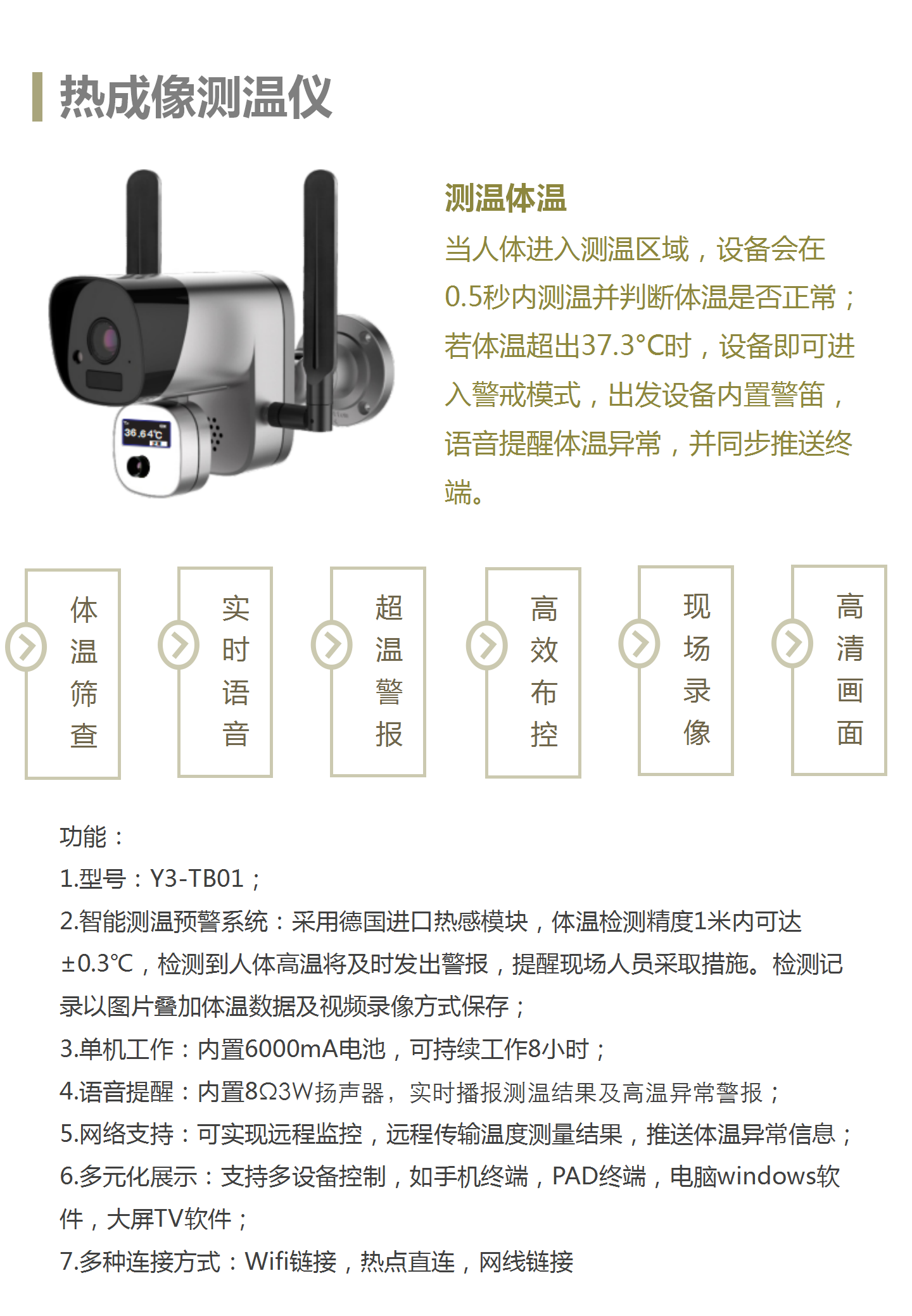 熱成像測(cè)溫探頭:攝像頭探測(cè)溫度,可能過APP或TV軟件實(shí)時(shí)監(jiān)護(hù)部署;