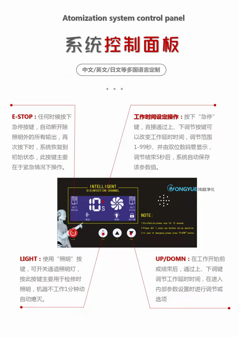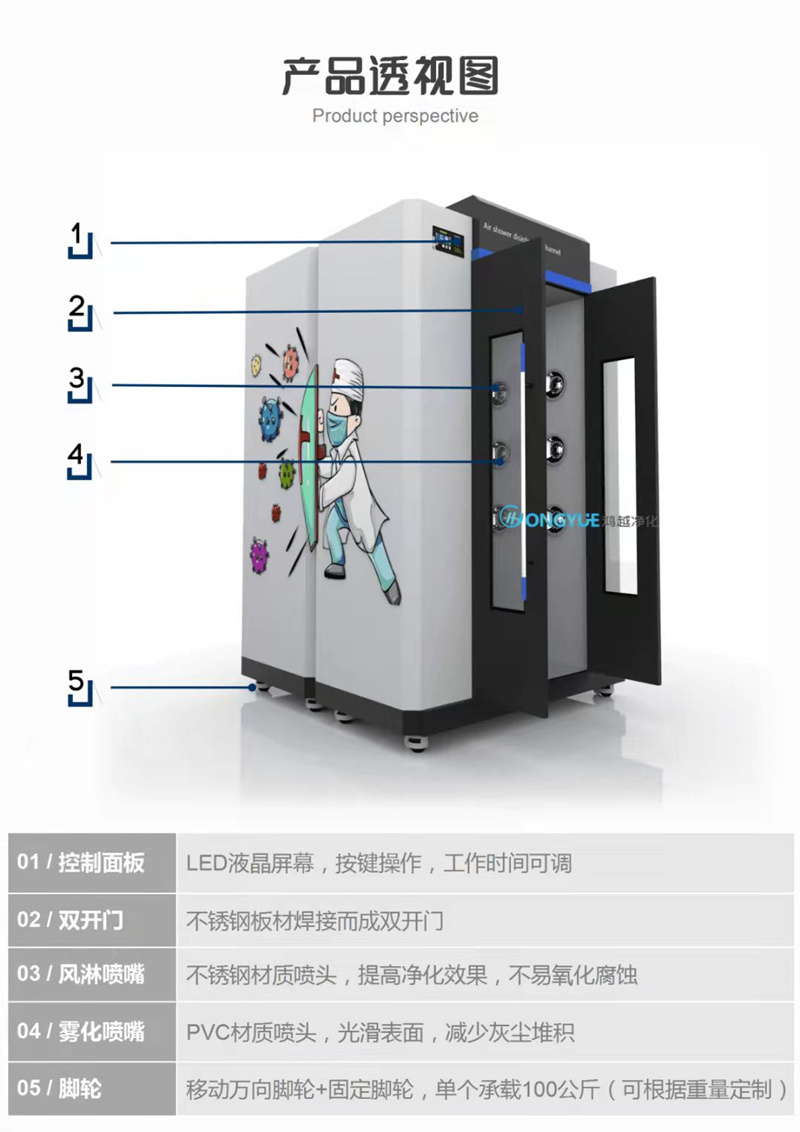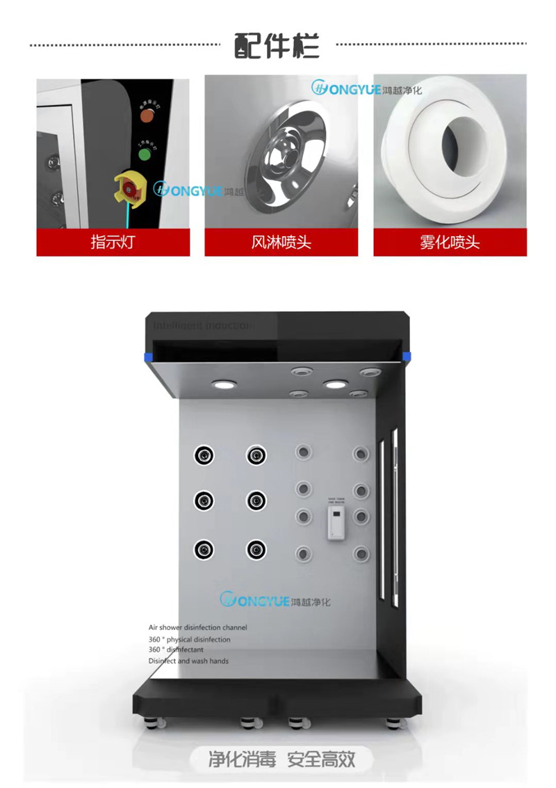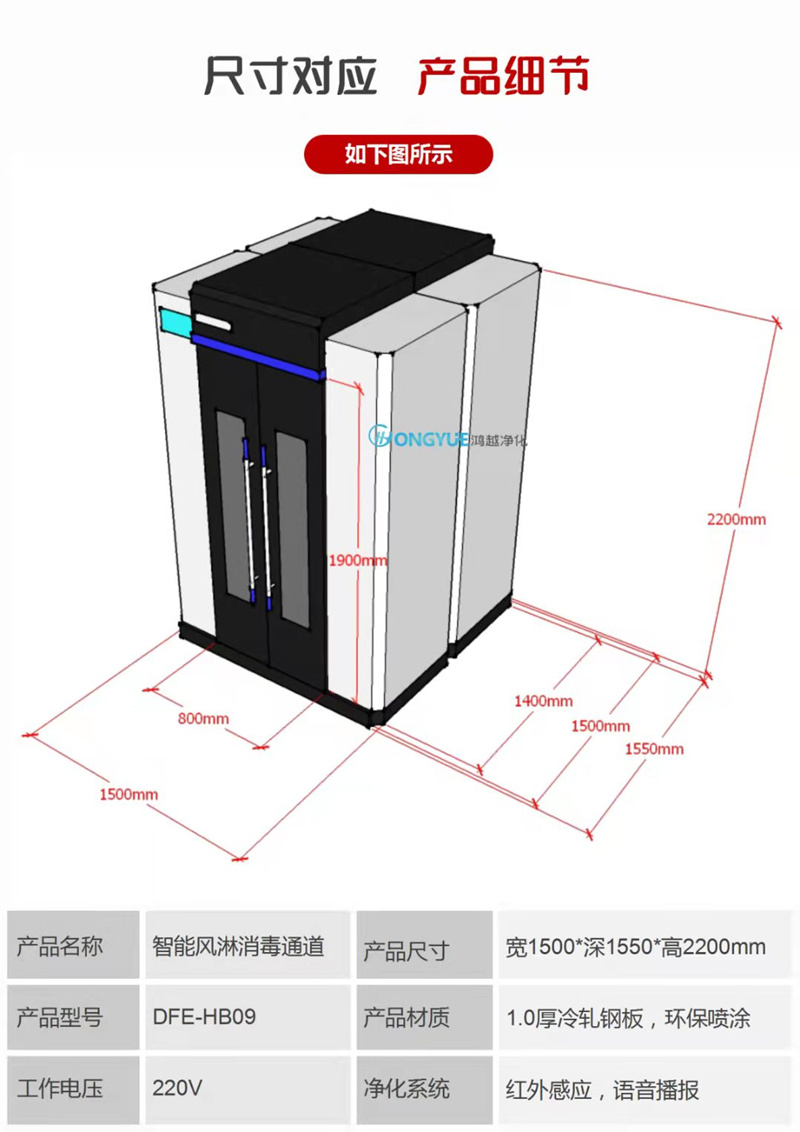 鴻越智能風淋消毒通道參數(shù)說明: